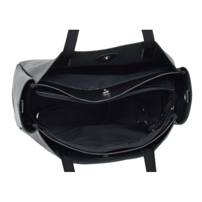 На вигляд сумочка дуже проста та мінімалістична. Як раз підійде для прихильників стриманості та виваженості в образі. Родзинка моделі полягає в її цікаво зроблених трьох відділеннях. Основне і найбільше, з додатковими кишеньками для телефону та дрібничок, застібається на блискавку. Інші два відділення, розміщенні попереду та позаду, на магнітні кнопки. В них дуже комфортно покласти речі, які часто використовуєте впродовж дня. В комплекті йде довгий ремінець.