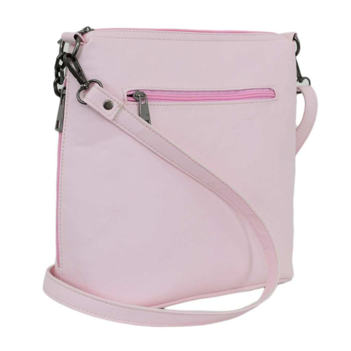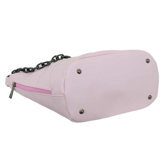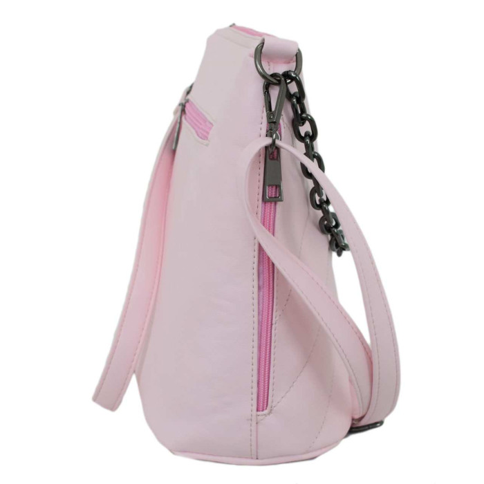 Модель виготовлена з приємного гладкого шкірзамінника високої якості та цупкої текстильної підкладки. Надійна фурнітура та дно на металевих ніжках продовжать життя виробу, оскільки запобігатимуть механічним пошкодженням та просіданню. Виріб на одне відділення, в середині з додатковими кишенями для мобільного телефону, всіляких дрібниць та одна потайна кишенька на застібці. На задній зовнішній стінці та по боках розміщені функціональні кишеньки на блискавці, які також виконують декоративну функцію. На задній зовнішній панелі зручно розміщена кишеня на застібці.