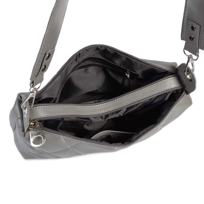 Довгий регульований ремінець,та короткий широкий не залишать без уваги. Сумка містить два окремих відділи на блискавці.Є додаткові внутрішні кишеньки, які допоможуть зберігати порядок. На задній зовнішній стінці розміщена врізна горизонтальна кишеня, яка додасть зручності під час експлуатації виробу. На дні вмонтовані металеві ніжки.