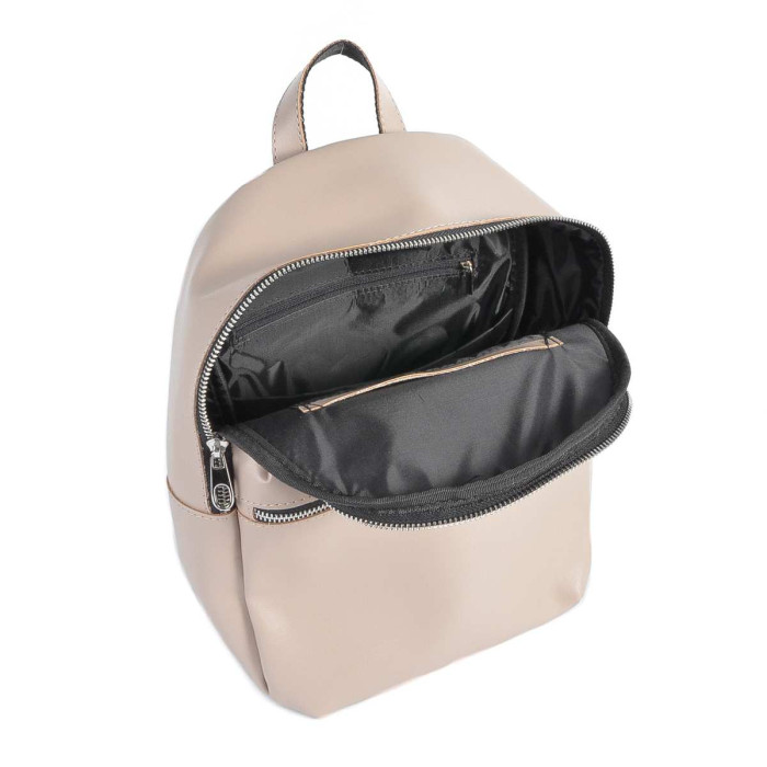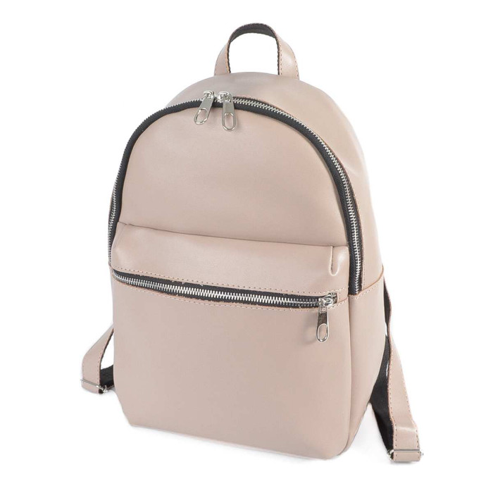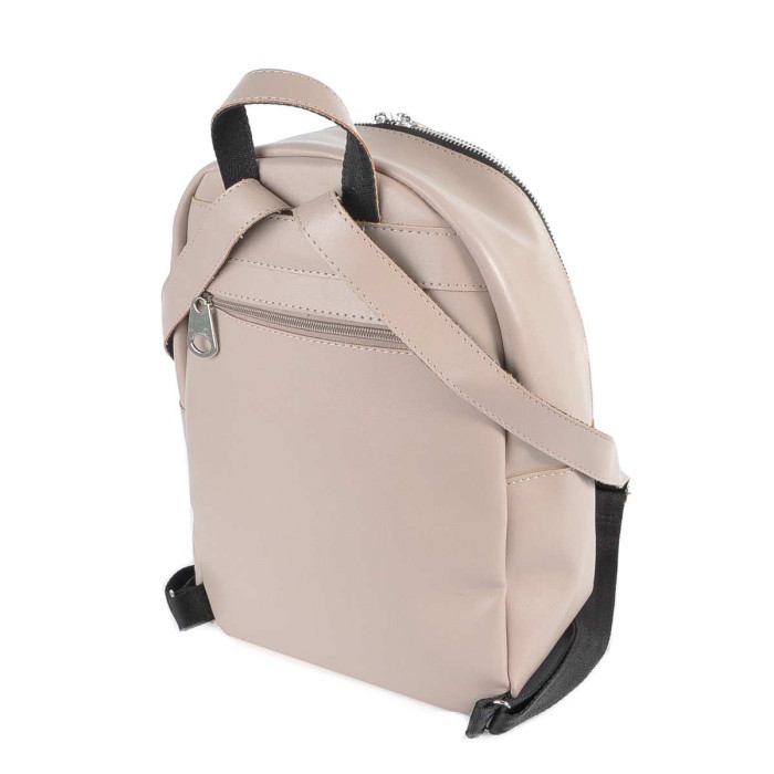 Рюкзак від українського виробника ТМ "LucheRino". Виготовлений з красивого якісного шкірозамінника, підкладка із міцної текстильної тканини. Рюкзак має одне основне відділення, яке застібається блискавкою. Горизонтально розташована кишенька на передній зовнішній стінці дуже зручна та практична у використанні. В середині розміщена потайна кишенька та невелика кишенька для мобільного телефона. Ремінці регулюються під бажаний розмір.
