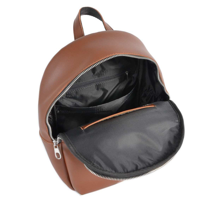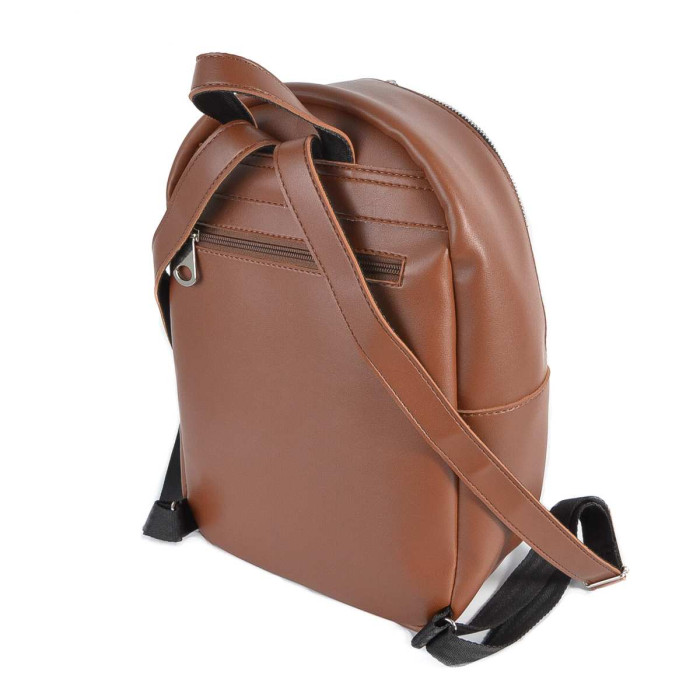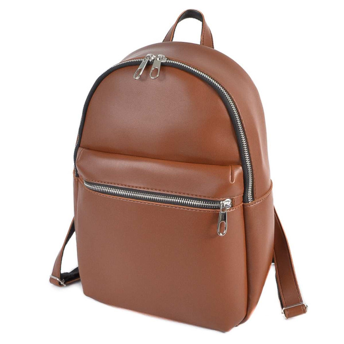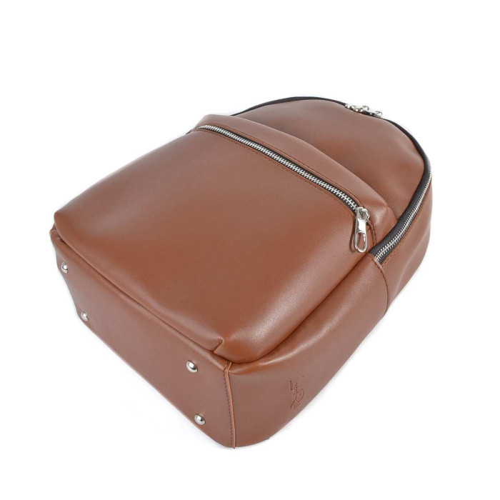 Рюкзак від українського виробника ТМ "LucheRino". Виготовлений з красивого якісного шкірозамінника, підкладка із міцної текстильної тканини. Рюкзак має одне основне відділення, яке застібається блискавкою. Горизонтально розташована кишенька на передній зовнішній стінці дуже зручна та практична у використанні. В середині розміщена потайна кишенька та невелика кишенька для мобільного телефона. Ремінці регулюються під бажаний розмір.
