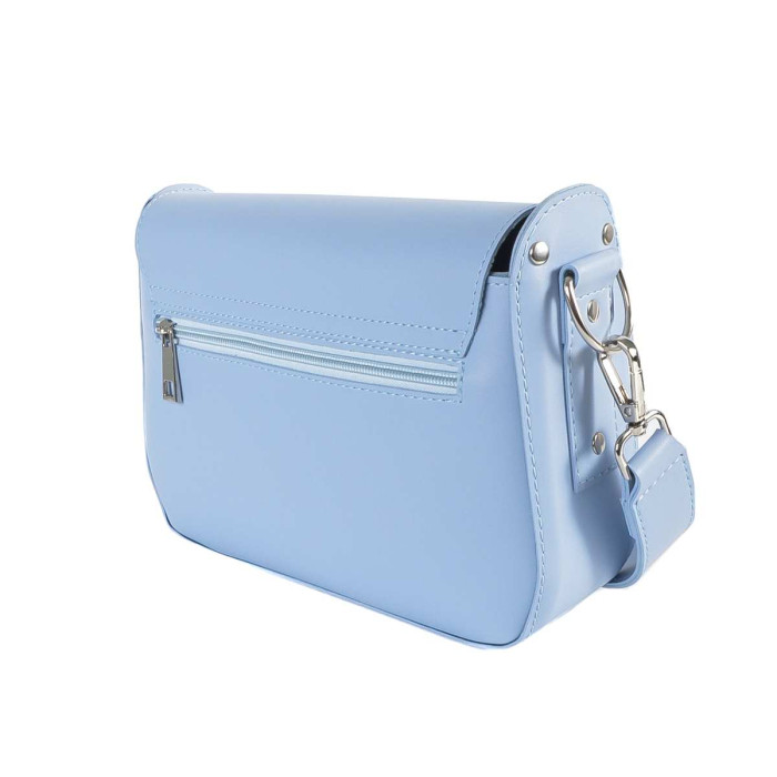 Весь виріб зачиняється на блискавку, яка накривається клапаном на магнітній кнопці. Сумочка має довгий ремінець, який можна відрегулювати під потрібний розмір, для легкого транспортування через плече, та короткий.