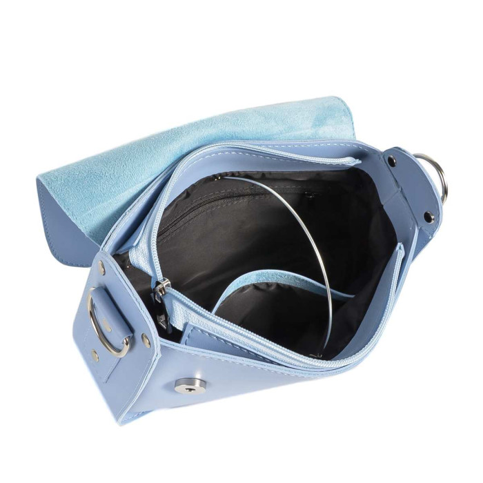 Невелика жіноча сумочка виготовлена з високоякісного шкірзамінника та якісної надійної фурнітури в кольорі - нікель. Одне відділення зручно розмістить великий гаманець, мобільний телефон та необхідні дрібниці. Всередині також розташована одна кишеня на застібці.