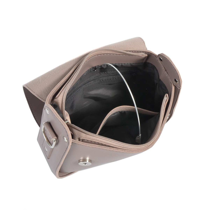 Невелика жіноча сумочка виготовлена з високоякісного шкірзамінника та якісної надійної фурнітури в кольорі - нікель. Одне відділення зручно розмістить великий гаманець, мобільний телефон та необхідні дрібниці. Всередині також розташована одна кишеня на застібці.
