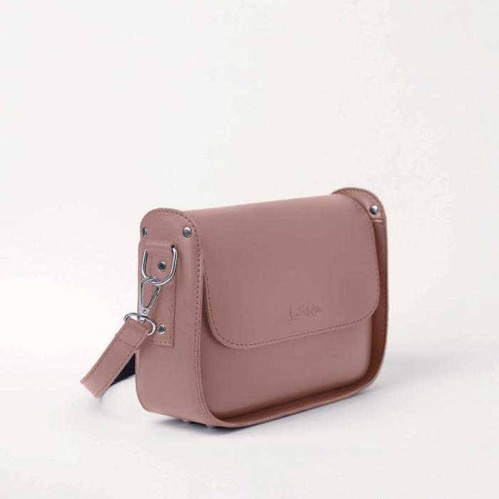 Весь виріб зачиняється на блискавку, яка накривається клапаном на магнітній кнопці. Сумочка має довгий ремінець, який можна відрегулювати під потрібний розмір, для легкого транспортування через плече, та короткий.