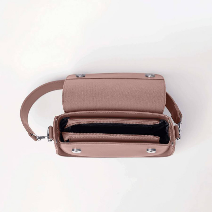 Невелика жіноча сумочка виготовлена з високоякісного шкірзамінника та якісної надійної фурнітури в кольорі - нікель. Одне відділення зручно розмістить великий гаманець, мобільний телефон та необхідні дрібниці. Всередині також розташована одна кишеня на застібці.