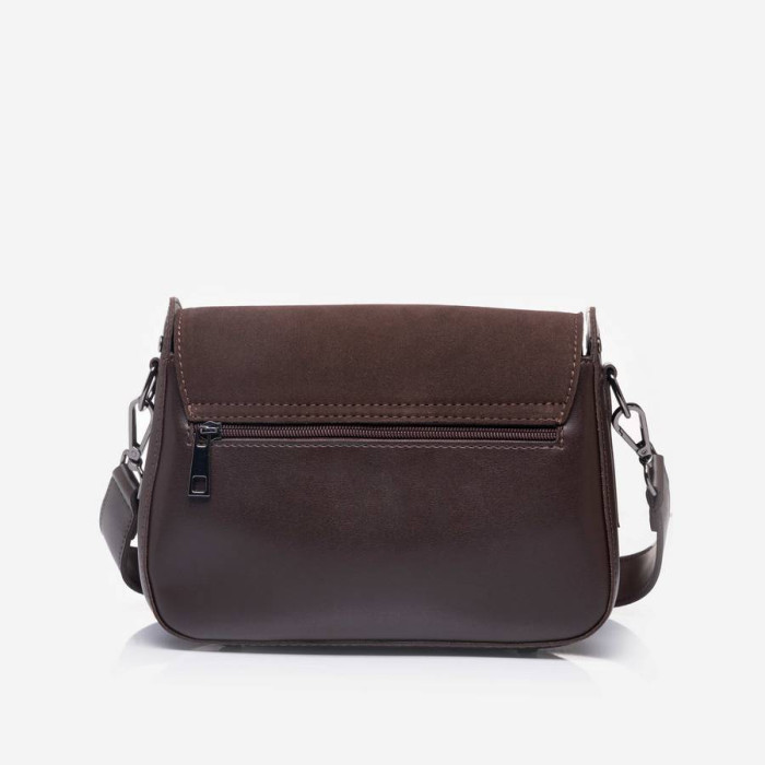 Весь виріб зачиняється на блискавку, яка накривається клапаном на магнітній кнопці. Сумочка має довгий ремінець, який можна відрегулювати під потрібний розмір, для легкого транспортування через плече, та короткий.