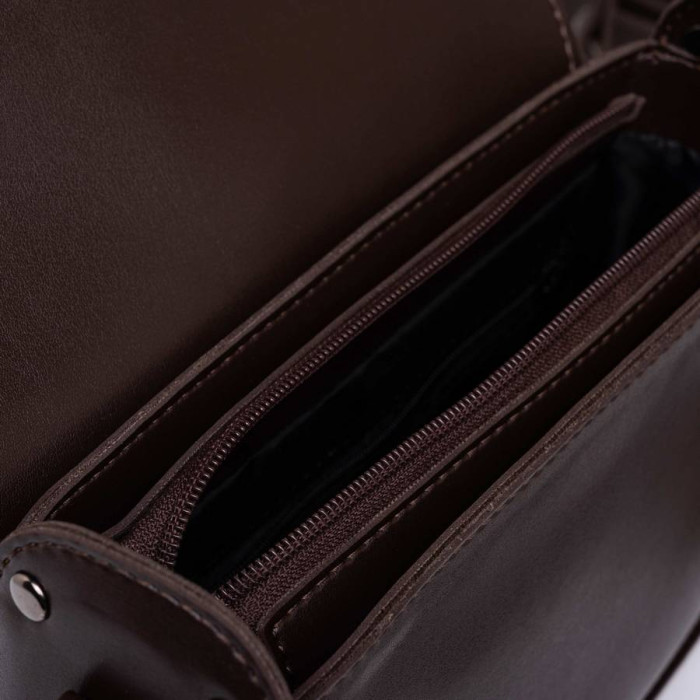 Невелика жіноча сумочка виготовлена з високоякісного шкірзамінника та якісної надійної фурнітури в кольорі - нікель. Одне відділення зручно розмістить великий гаманець, мобільний телефон та необхідні дрібниці. Всередині також розташована одна кишеня на застібці.