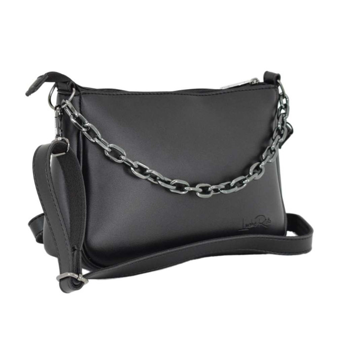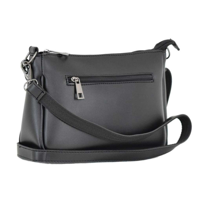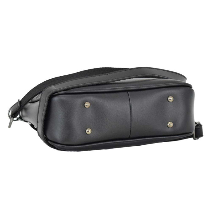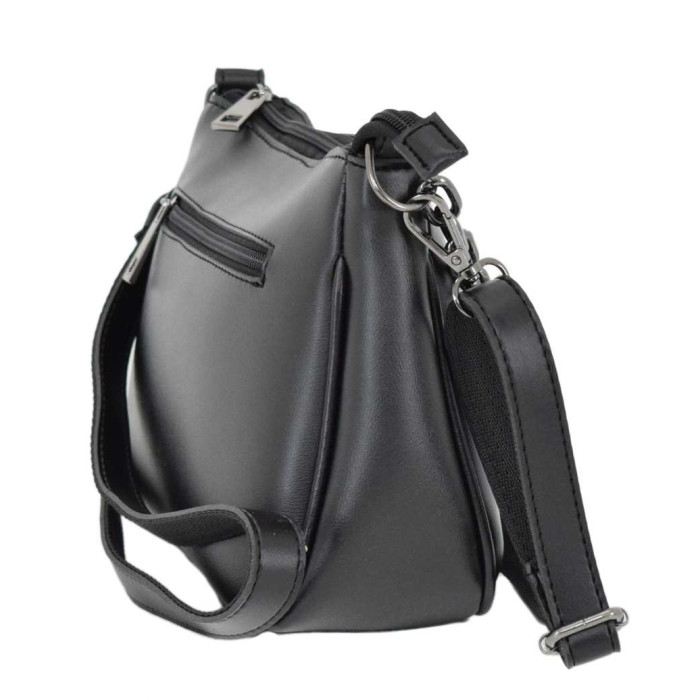 Сумка на одне загальне відділення. Не дивлячись на невеликі розміри, сумочка виявилась достатньо вмісткою. Весь виріб зачиняється на блискавку. Довгий ремінь з можливість регулювання довжини виготовлений з шкірзаміннику. На задній стінці вмонтована кишеня, яка зачиняється на блискавку. На дні встановлені металеві ніжки, які будуть захищати від пошкоджень.
