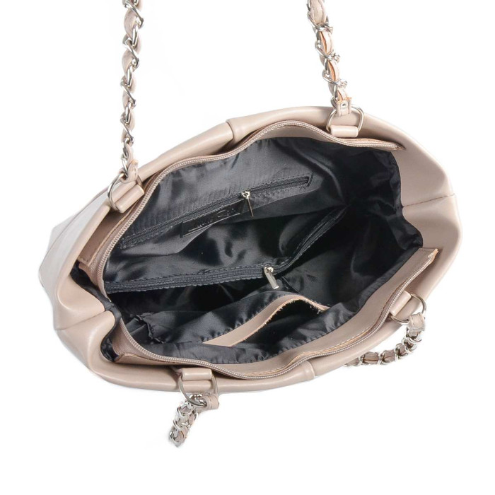 Всередині знаходяться одне основне відділення, та невеликий карман-перегородка на застібці. Для більшої зручності та створення порядку в сумці спеціально була розроблена одна відкрита кишеня для мобільного телефону та дрібниць, а з протилежного боку потаємна кишеня на застібці. Підкладка для внутрішньої частини виготовлена з якісного міцного текстильного матеріалу. Використовується міцна фурнітура.
