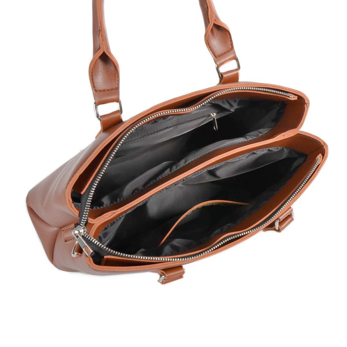 Сумка з двома ручками невеликої довжини, які ручно носити в руці. Також наявний знімний широкий регульований ремінь.
