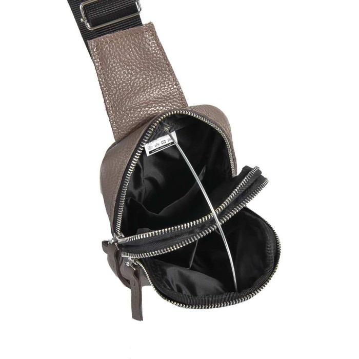 Стильна та практична сумочка виготовлена з високоякісної шкіри, текстильної підкладки та надійної фурнітури. Модель з двома відділеннями, які зачиняються на окрему блискавку.