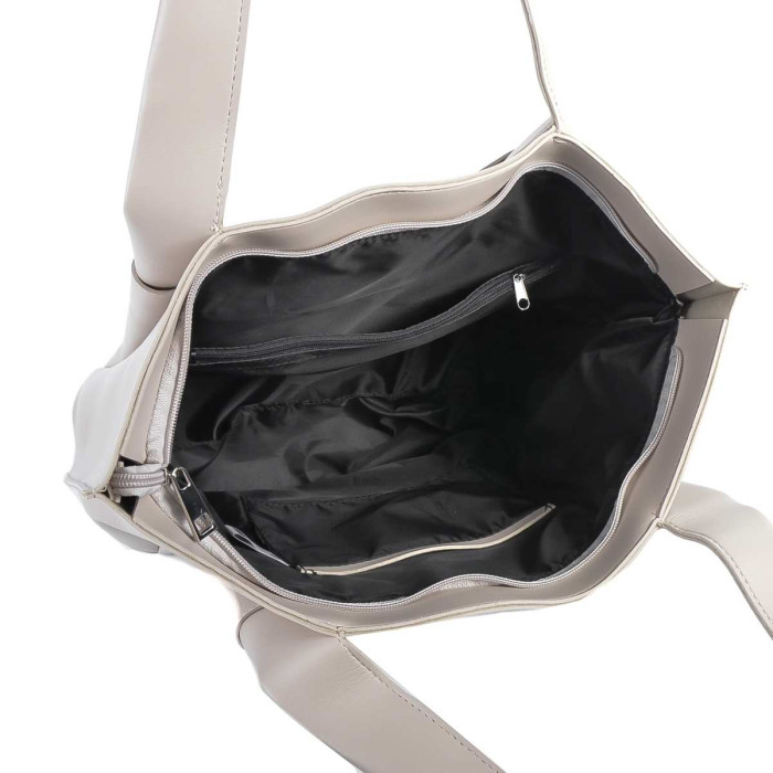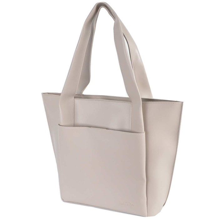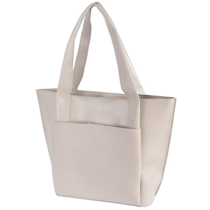 Сумка з двома ручками середньої довжини, які ручно носити в руці та на плечі. Також наявний знімний регульований ремінь. Передня та задня зовнішні стінки оздоблені великими накладними функціональними кишенями, які зручно зачиняються магнітними застібками. Широке тверде дно спеціально оснащене металевими пуклями, які захищатимуть від пошкоджень.