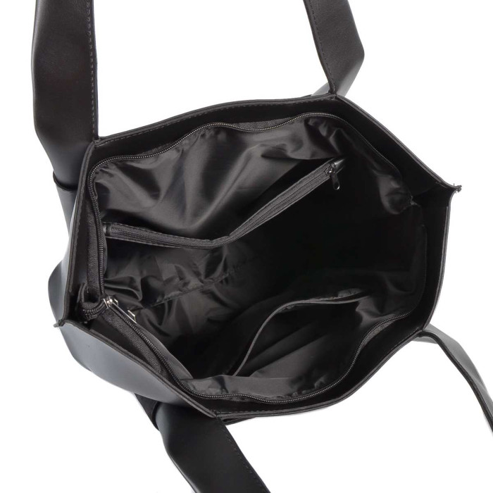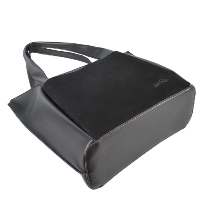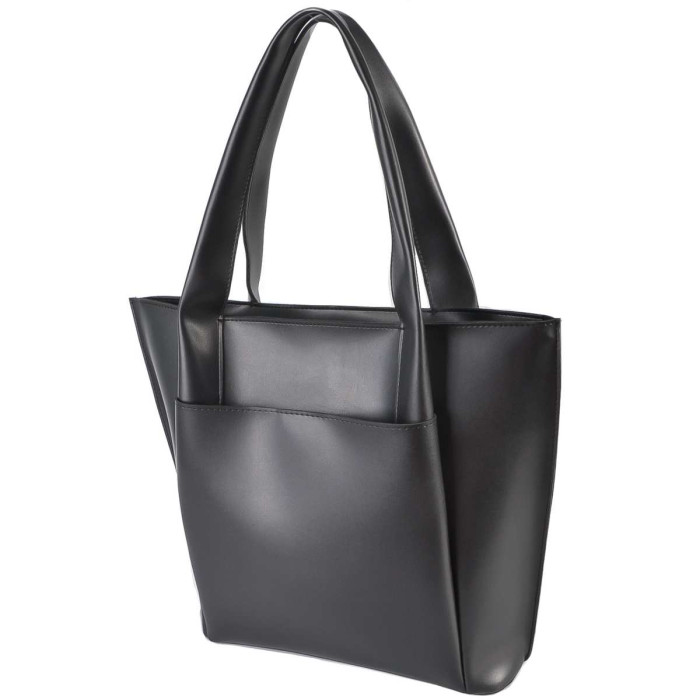 Сумка з двома ручками середньої довжини, які ручно носити в руці та на плечі. Передня та задня зовнішні стінки оздоблені великими накладними функціональними замшевими кишенями, які зручно зачиняються магнітними застібками.
