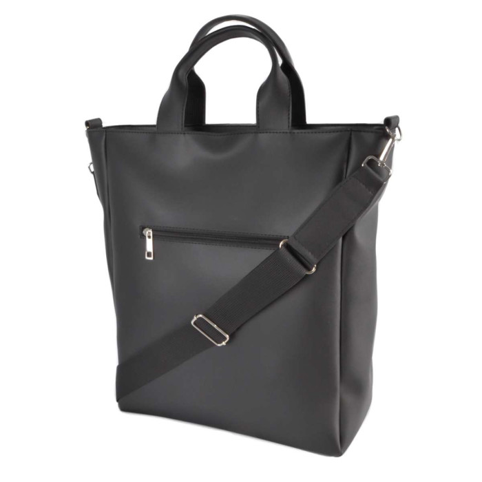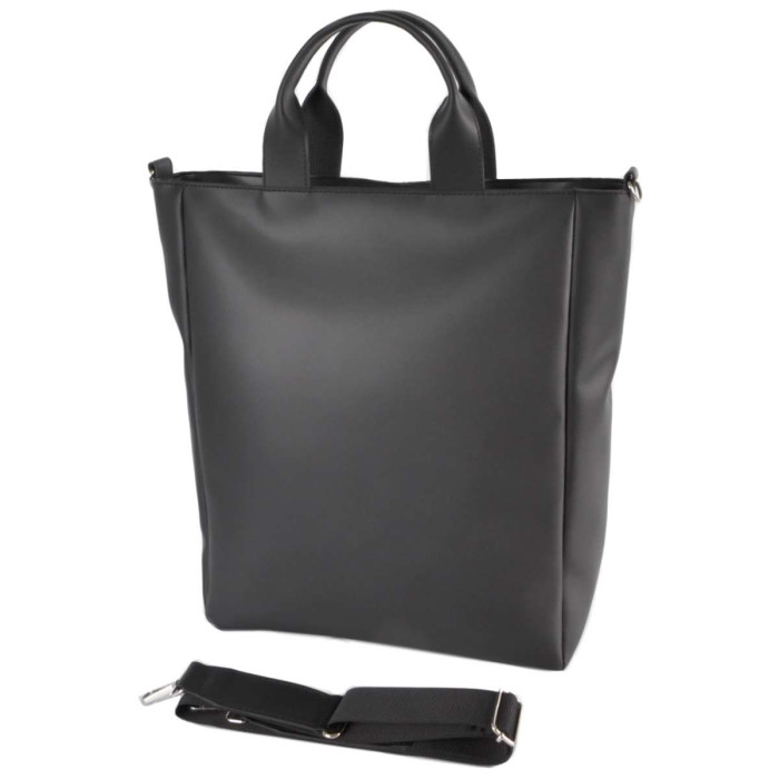 Сумку, з простим кроєм та мінімальним оздобленням, виконано з шкірзамінника високої якості, щоб її використання було максимально тривалим та приємним. Сумочка має дві короткі ручки, які розраховані на комфортне транспортування в руці. До комплекту входить довгий регульований ремінець. Задня стінка оснащена врізною кишенею на застібці. Весь виріб зачиняється на блискавку.