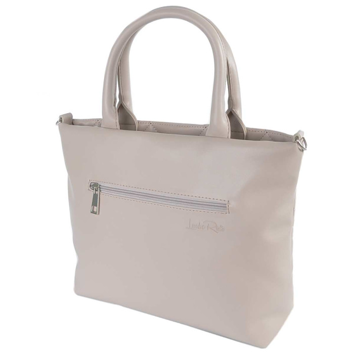 Модель виготовляється з високоякісного шкірозамінника та надійної фурнітури. На задній зовнішній стінці зручно розташована врізна кишеня на застібці. Дві короткі ручки дозволяють носити сумку в руці та біля ліктя. Весь виріб зачиняється на блискавку.