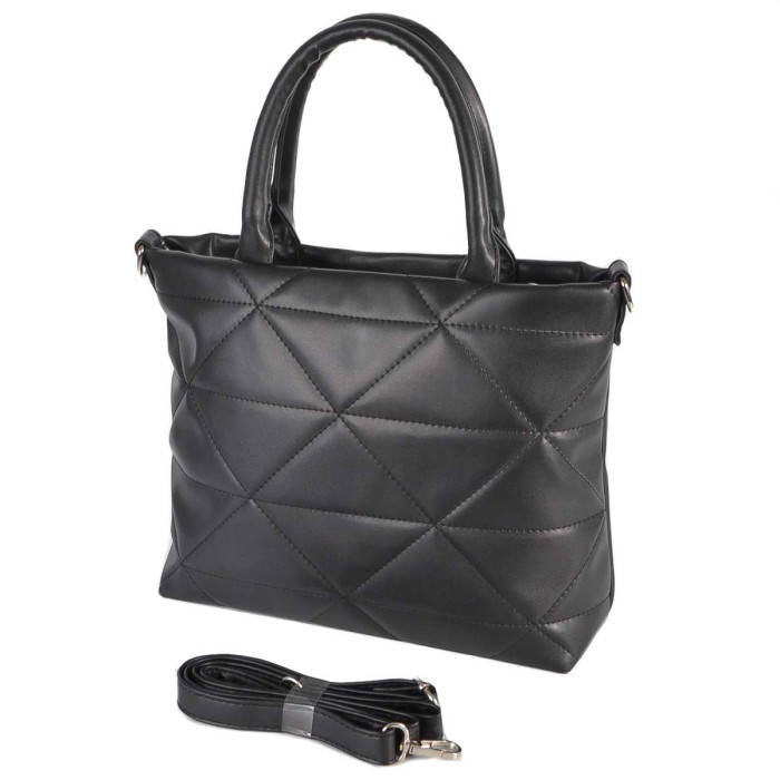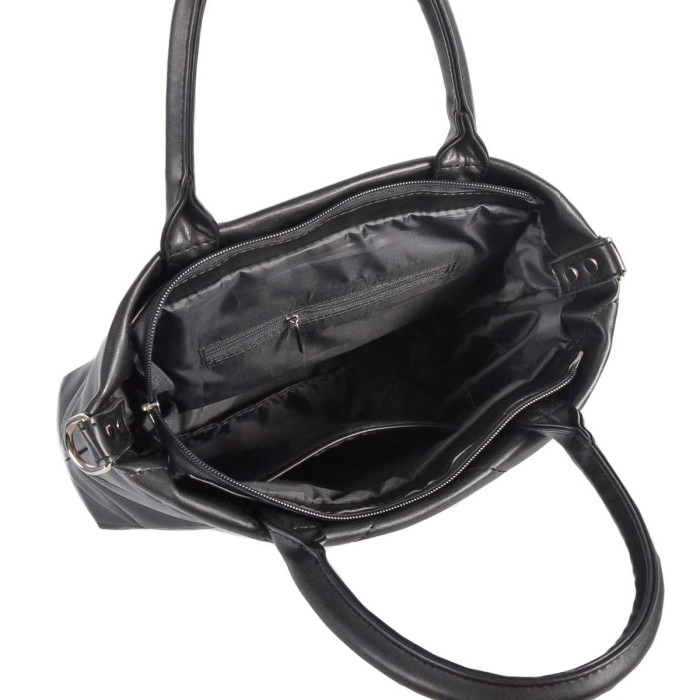 Модель виготовляється з високоякісного шкірозамінника та надійної фурнітури. На задній зовнішній стінці зручно розташована врізна кишеня на застібці. Дві короткі ручки дозволяють носити сумку в руці та біля ліктя. Весь виріб зачиняється на блискавку.