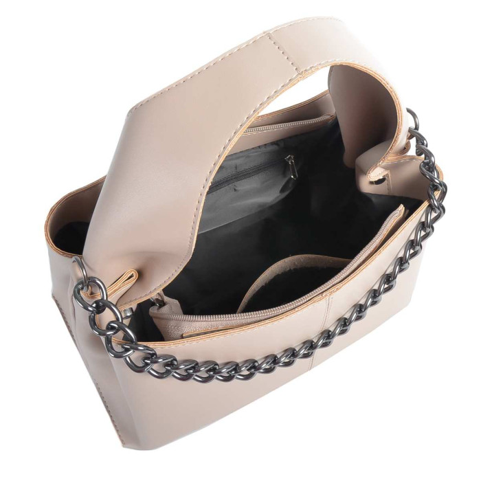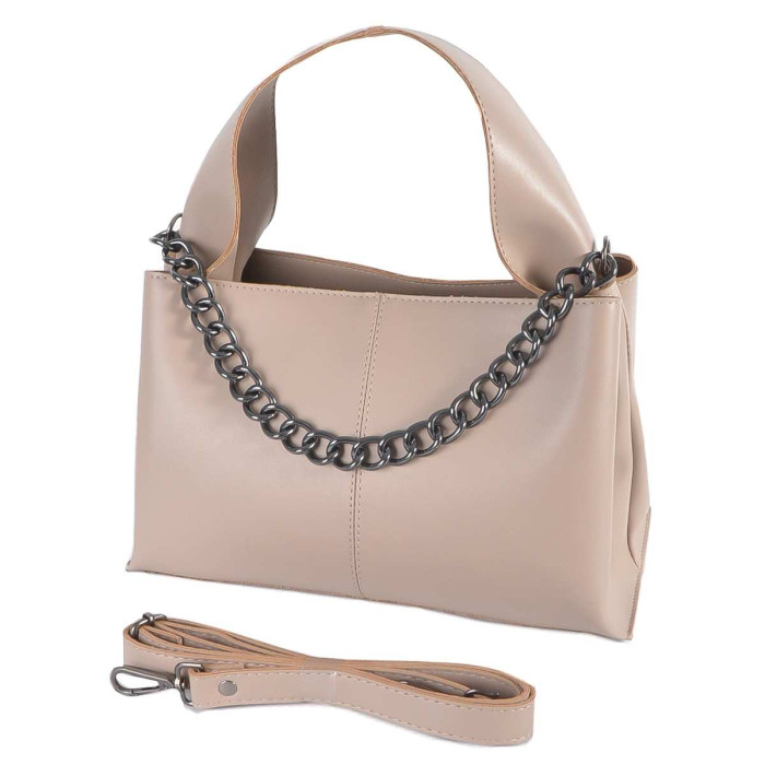 Сумка на одне загальне відділення. Не дивлячись на невеликі розміри, сумочка виявилась достатньо вмісткою. Весь виріб зачиняється на блискавку. Довгий ремінь з можливість регулювання довжини виготовлений з шкірзаміннику. На задній стінці вмонтована кишеня, яка зачиняється на блискавку.
