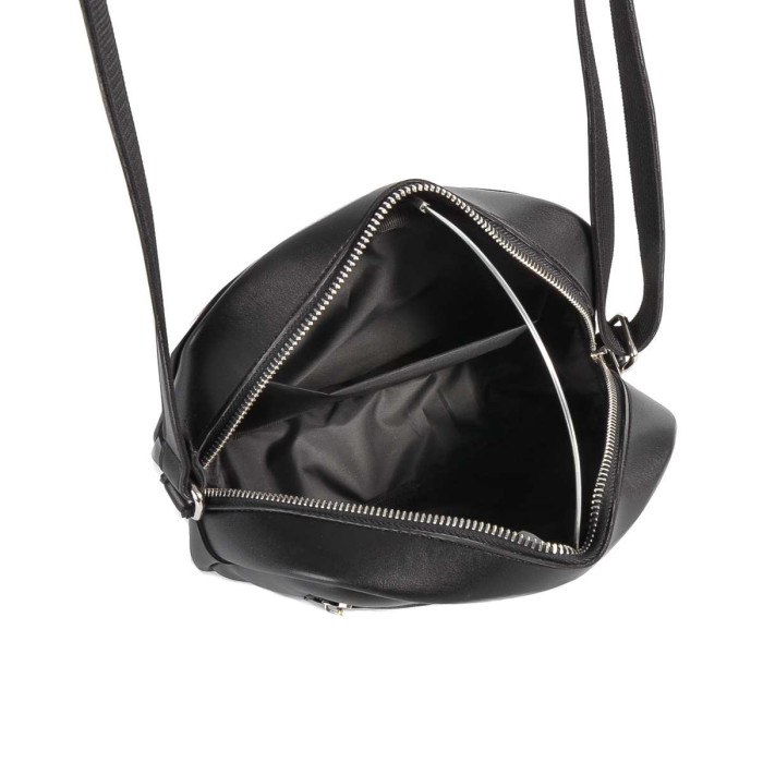 Довгий регульований ремінець, у комбінації шкірзамінника та металевого ланцюжка, не залишиться без уваги. Не дивлячись на компактні розміри, на задній зовнішній стінці розміщена врізна кишеня на блискавці, яка додасть зручності під час експлуатації виробу.