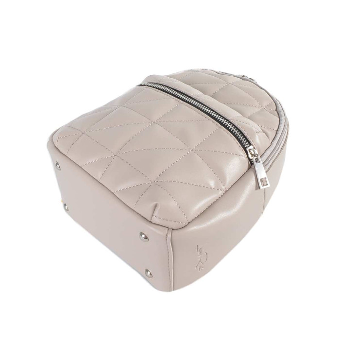 Рюкзак від українського виробника ТМ "LucheRino". Виготовлений з красивого якісного шкірозамінника, підкладка із міцної текстильної тканини. Рюкзак має одне основне відділення, яке застібається блискавкою. Горизонтально розташована кишенька на передній зовнішній стінці дуже зручна та практична у використанні. В середині розміщена потайна кишенька та невелика кишенька для мобільного телефона. Ремінці регулюються під бажаний розмір.