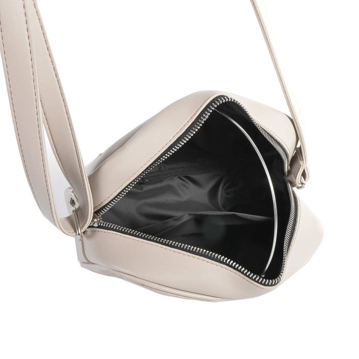 Довгий регульований ремінець, у комбінації шкірзамінника та металевого ланцюжка, не залишиться без уваги. Не дивлячись на компактні розміри, на задній зовнішній стінці розміщена врізна кишеня на блискавці, яка додасть зручності під час експлуатації виробу.