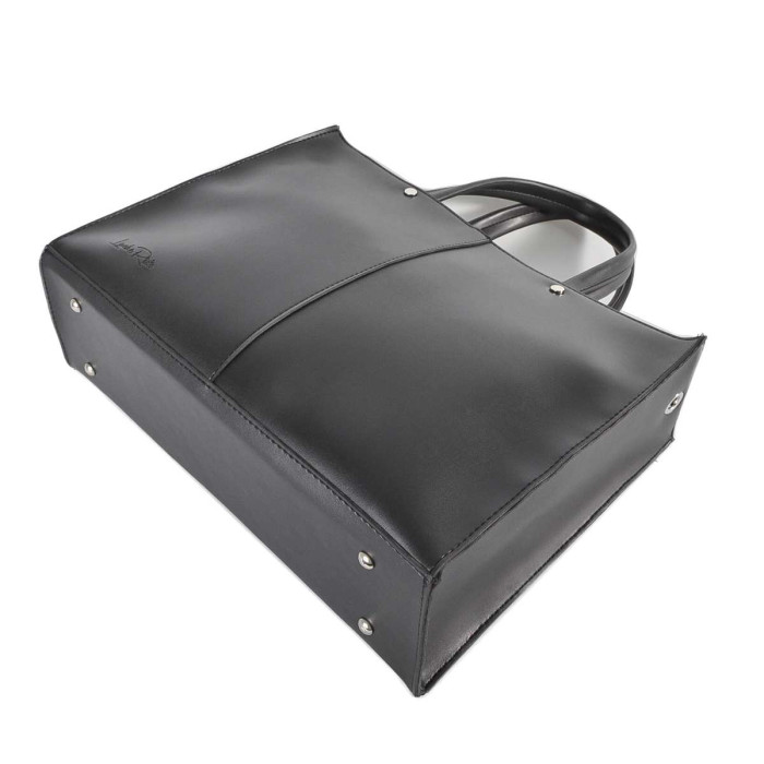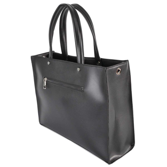 Сумку, з простим кроєм та мінімальним оздобленням, виконано з шкірозамінника високої якості, щоб її використання було максимально тривалим та приємним. Основна увага акцентується на гарній текстурі шкірзамінника ззовні, який з внутрішньої сторони має оригінальне покриття імітоване під велюр. Сумочка має дві короткі ручки, які розраховані на комфортне транспортування в руці. До комплекту входить довгий регульований ремінець. Задня стінка оснащена врізною кишенею на застібці. На дні встановлені металеві ніжки. Весь виріб зачиняється на блискавку.