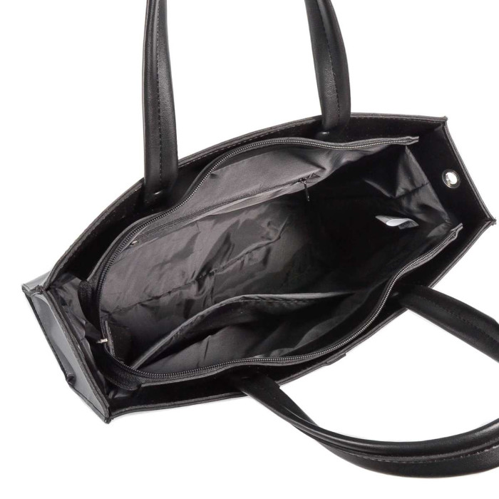 Всередині знаходяться два відділення, які розділяє кишеня-перегородка на застібці. Підкладка для внутрішньої частини виготовляється з якісного міцного текстильного матеріалу. Для більшої зручності та створення порядку в сумці спеціально були розроблені дві відкриті кишені для мобільного телефону та дрібниць, а з протилежного боку потаємна кишеня на застібці.