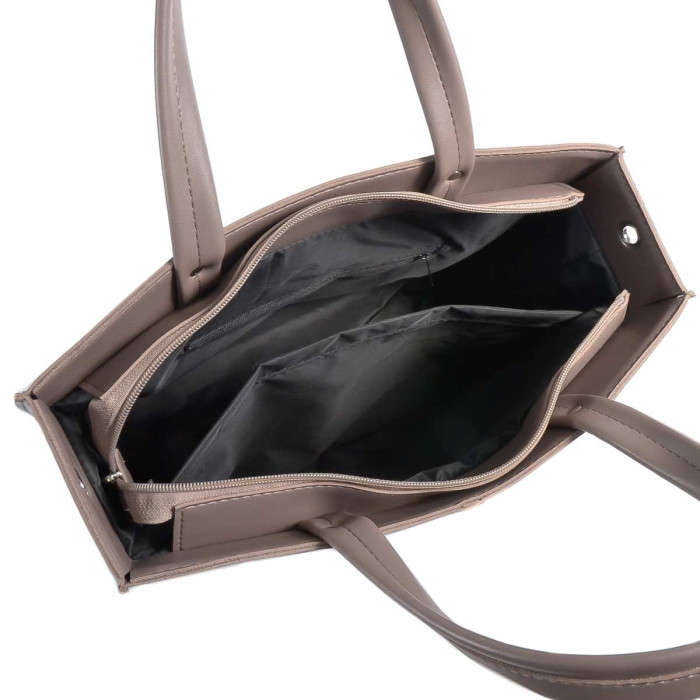 Всередині знаходяться два відділення, які розділяє кишеня-перегородка на застібці. Підкладка для внутрішньої частини виготовляється з якісного міцного текстильного матеріалу. Для більшої зручності та створення порядку в сумці спеціально були розроблені дві відкриті кишені для мобільного телефону та дрібниць, а з протилежного боку потаємна кишеня на застібці.