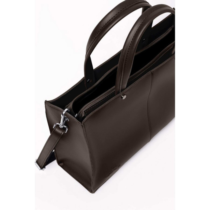 Всередині знаходяться два відділення, які розділяє кишеня-перегородка на застібці. Підкладка для внутрішньої частини виготовляється з якісного міцного текстильного матеріалу. Для більшої зручності та створення порядку в сумці спеціально були розроблені дві відкриті кишені для мобільного телефону та дрібниць, а з протилежного боку потаємна кишеня на застібці.