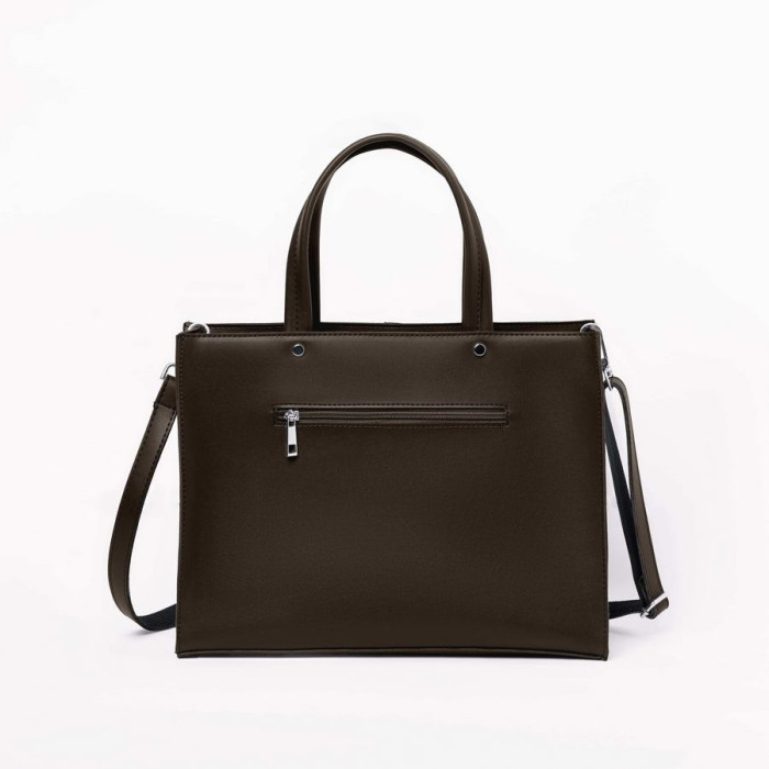Сумку, з простим кроєм та мінімальним оздобленням, виконано з шкірозамінника високої якості, щоб її використання було максимально тривалим та приємним. Основна увага акцентується на гарній текстурі шкірзамінника ззовні, який з внутрішньої сторони має оригінальне покриття імітоване під велюр. Сумочка має дві короткі ручки, які розраховані на комфортне транспортування в руці. До комплекту входить довгий регульований ремінець. Задня стінка оснащена врізною кишенею на застібці. На дні встановлені металеві ніжки. Весь виріб зачиняється на блискавку.