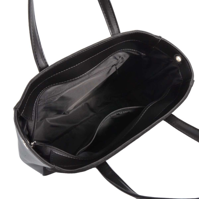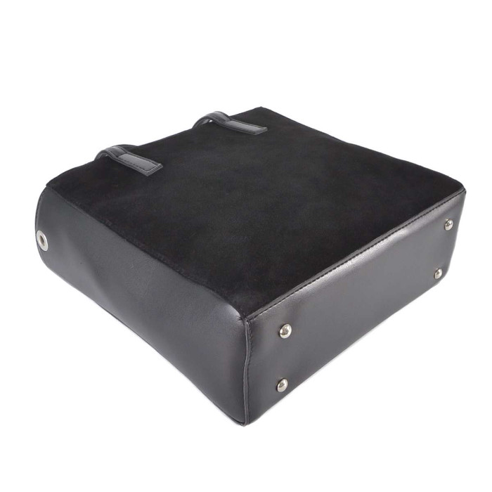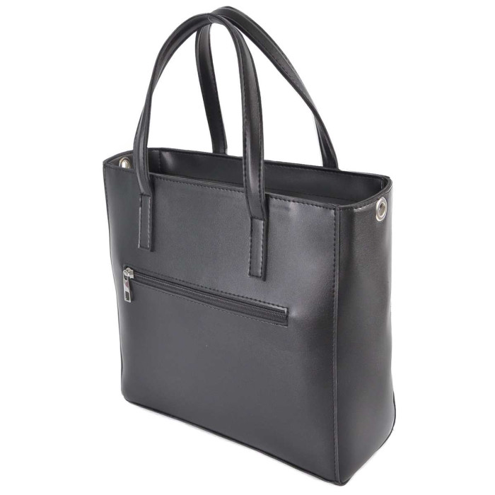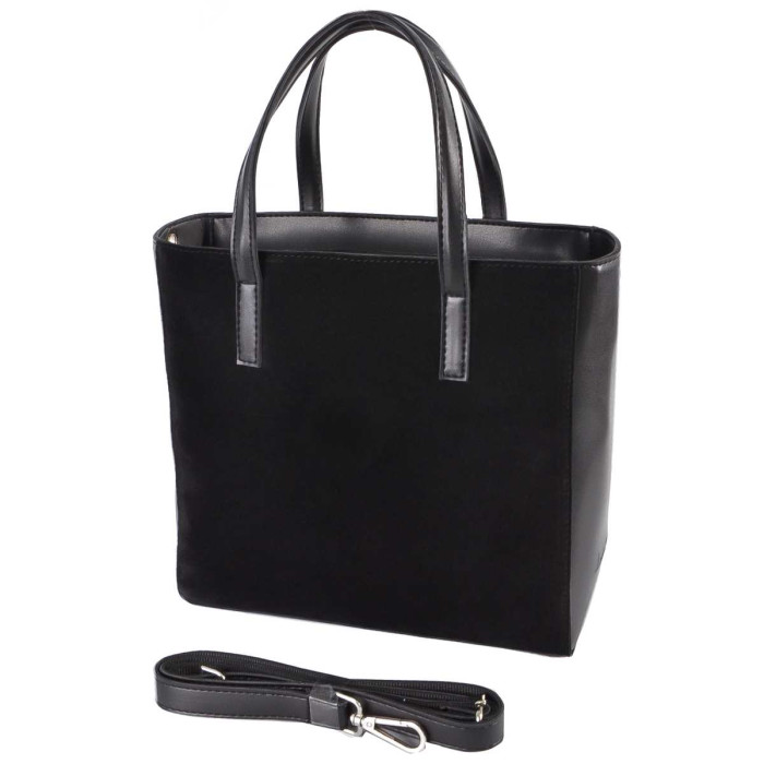 Сумку, з простим кроєм та мінімальним оздобленням, виконано з шкірозамінника високої якості, щоб її використання було максимально тривалим та приємним. Сумочка має дві короткі ручки, які розраховані на комфортне транспортування в руці. До комплекту входить довгий регульований ремінець. Задня стінка оснащена врізною кишенею на застібці. На дні встановлені металеві ніжки. Весь виріб зачиняється на блискавку.