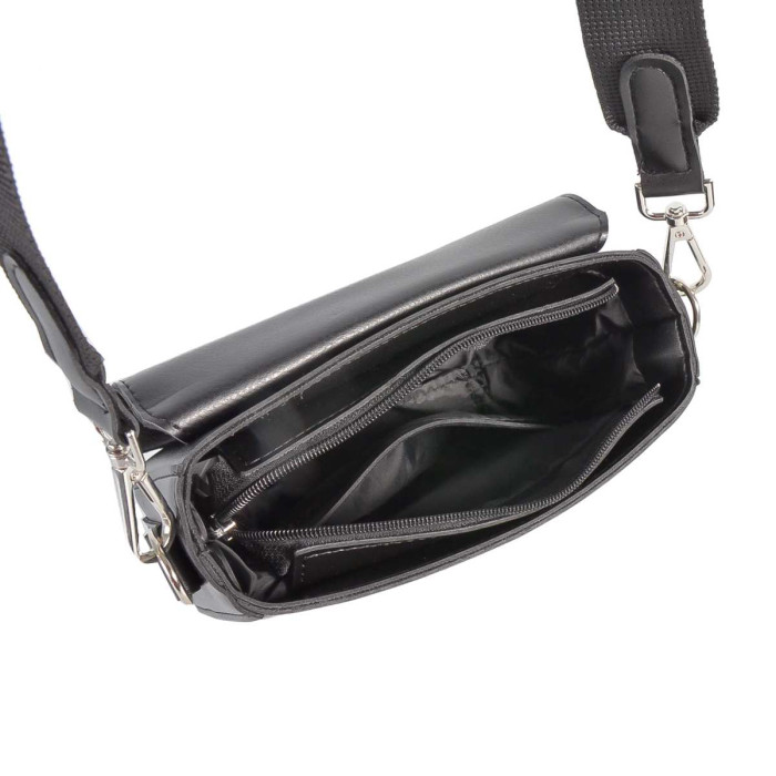 Невелика жіноча сумочка виготовлена з високоякісного шкірзамінника та якісної надійної фурнітури в кольорі - нікель. Одне відділення зручно розмістить великий гаманець, мобільний телефон та необхідні дрібниці. Всередині також розташована одна кишеня на застібці.