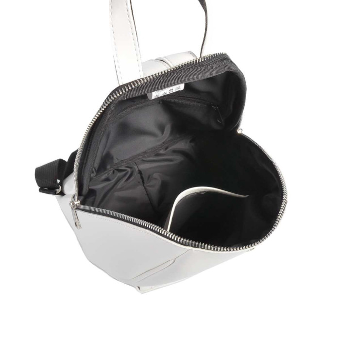 Рюкзак має одне основне відділення, яке застібається блискавкою. Горизонтально розташована кишенька на передній зовнішній стінці дуже зручна та практична у використанні. В середині розміщена потайна кишенька на застібці та невелика кишенька для всіляких дрібниць. Підкладка тільки з міцної текстильної тканини.