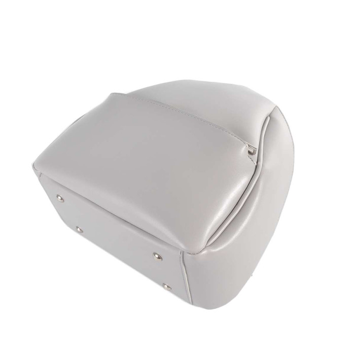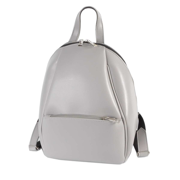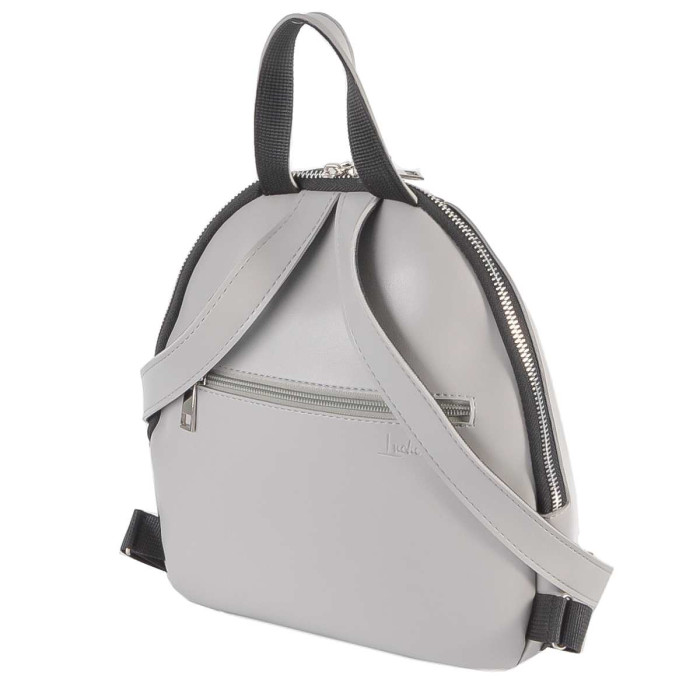 Виріб виконаний з високоякісного шкірозаміника з легким відблиском. Завдяки заокругленим формам дуже гарний візуально та приємний на дотик, а середні розміри роблять виріб дуже вмістким та зручним. Зміцнене дно на металевих ніжках запобігатиме просіданню та пошкодженням під час експлуатації. Наявні стаціонарні ремінці, які можна відрегулювати під потрібний розмір. У верхній частині також пришита маленька ручка для транспортування в руці. Задня панель рюкзачка м'яка, не потовщена.