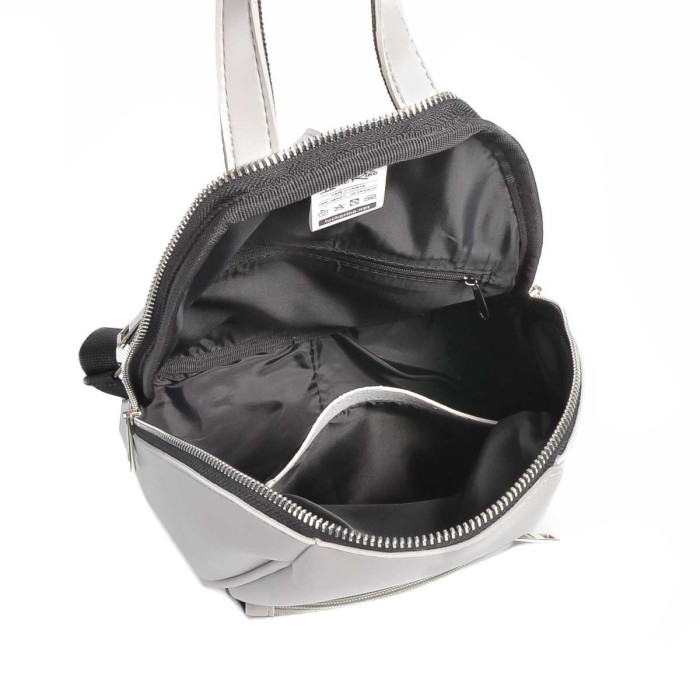 Рюкзак має одне основне відділення, яке застібається блискавкою. Горизонтально розташована кишенька на передній зовнішній стінці дуже зручна та практична у використанні. В середині розміщена потайна кишенька на застібці та невелика кишенька для всіляких дрібниць. Підкладка тільки з міцної текстильної тканини.