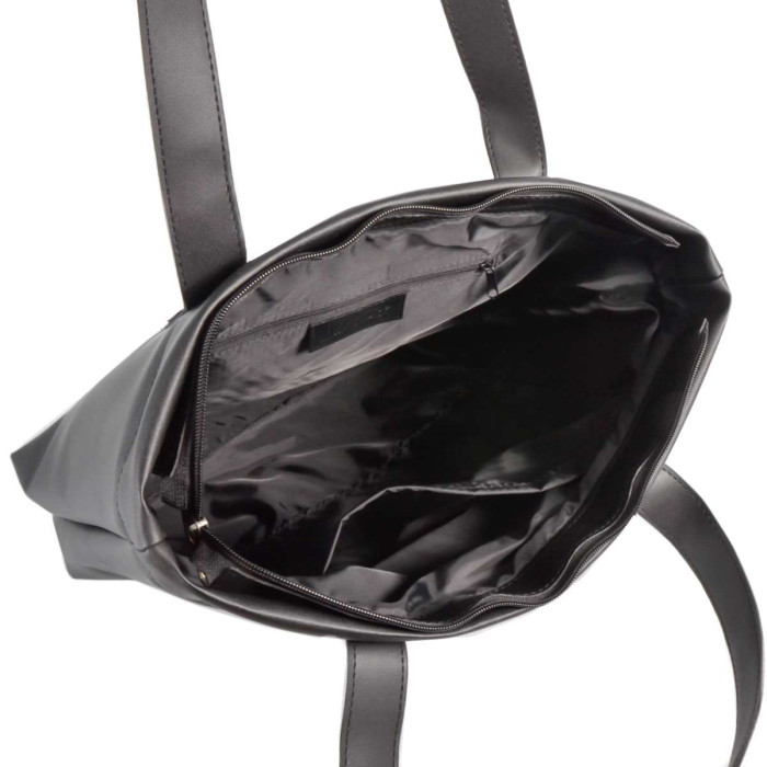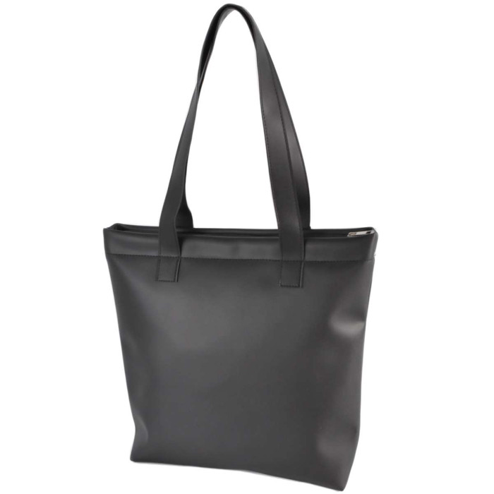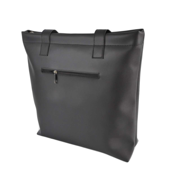 Сумку-шопер, з простим кроєм та мінімальним оздобленням, виконано з шкірозамінника високої якості, щоб її використання було максимально тривалим та приємним. Основна увага акцентується на гарній текстурі шкірзамінника ззовні, який з внутрішньої сторони має оригінальне покриття імітоване під велюр. Сумочка має дві довгі ручки, які розраховані на комфортне транспортування як в руці так і на плечі. Задня стінка оснащена врізною кишенею на застібці.