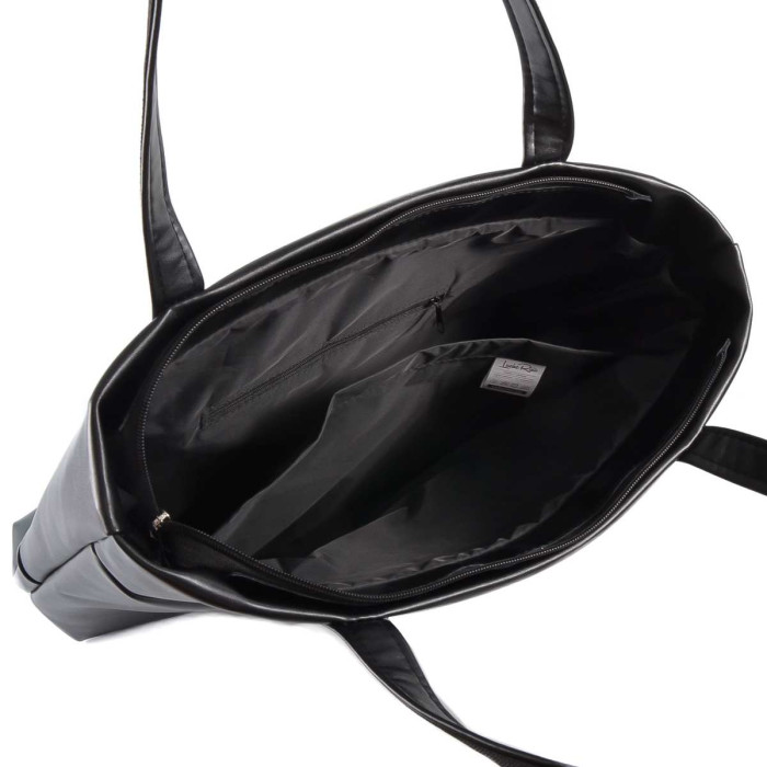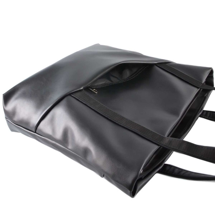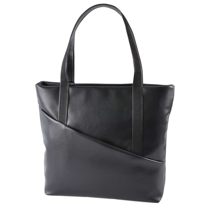 Аксесуар з двома нерегульованими зручними ручками середньої довжини, які закріплені металевими пуклями. Великі прямокутні форми сумки з легкістю розміщують документи формату А4. На тильній зовнішній стороні розміщена кишеня на блискавці.