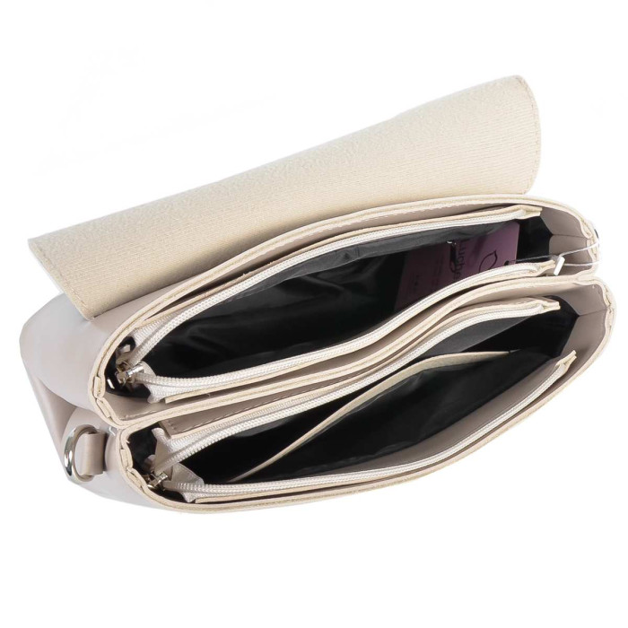 Невелика сумочка від українського виробника ТМ "LucheRino". Виготовлена з якісного шкірзамінника, підкладка з міцної текстильної тканини. Сумка на два відділення. На зовнішній задній стінці врізна кишеня на блискавці. В середині сумки невелика потайна кишеня. Модель ідеально підійде як для класичного костюма так і для вечірнього плаття.
