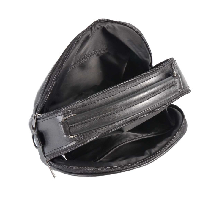 Довгий регульований ремінець, у комбінації шкірзамінника та металевого ланцюжка, не залишиться без уваги. Не дивлячись на компактні розміри, на задній зовнішній стінці розміщена врізна кишеня на блискавці, яка додасть зручності під час експлуатації виробу.