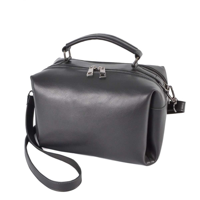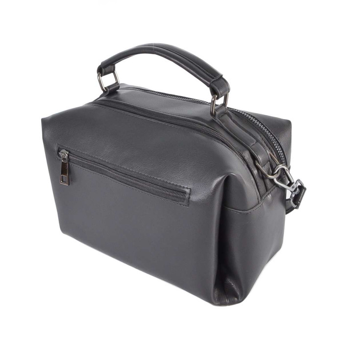 Сумка виготовляється з екошкіри високої якості, яка найкраще зарекомендував себе у використанні. Не дивлячись на не великі розміри, сумка містка та практична. Міні-чемоданчик стильно супроводжуватиме Вас будь-де і Ви матимете змогу взяти з собою не тільки необхідні речі, а навіть більше... Фурнітура як завжди на висоті і в даній моделі використана в кольорі - нікель. Мінімальний декор - кишеня на задній стінці. Маленька стаціонарна ручка дозволить носити сумочку в руці. До комплекту входить довгий ремінець, який регулюється і кріпиться металевими карабінами.