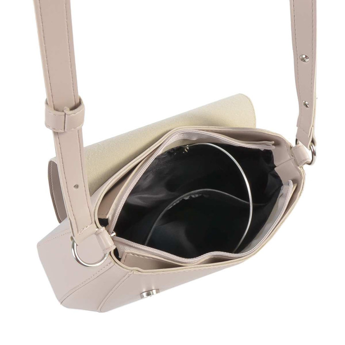 Невелика жіноча сумочка виготовлена з високоякісного шкірзамінника та якісної надійної фурнітури в кольорі - нікель. Одне відділення зручно розмістить великий гаманець, мобільний телефон та необхідні дрібниці. Всередині також розташована одна кишеня на застібці.