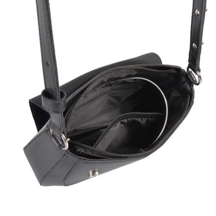 Невелика жіноча сумочка виготовлена з високоякісного шкірзамінника та якісної надійної фурнітури в кольорі - нікель. Одне відділення зручно розмістить великий гаманець, мобільний телефон та необхідні дрібниці. Всередині також розташована одна кишеня на застібці.