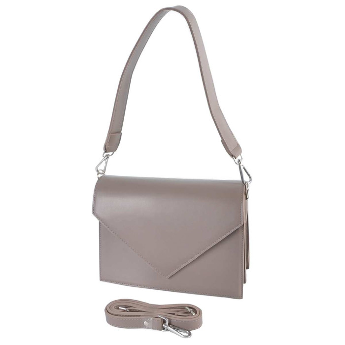 Сумка виготовляється зі шкірозамінника високої якості, який найкраще зарекомендував себе у використанні. Стінки гарно тримають форму виробу. Фурнітура як завжди на висоті і в даній моделі використана в кольорі - нікель. До комплекту входить довгий ремінець, який регулюєтьсяі короткий не регульований