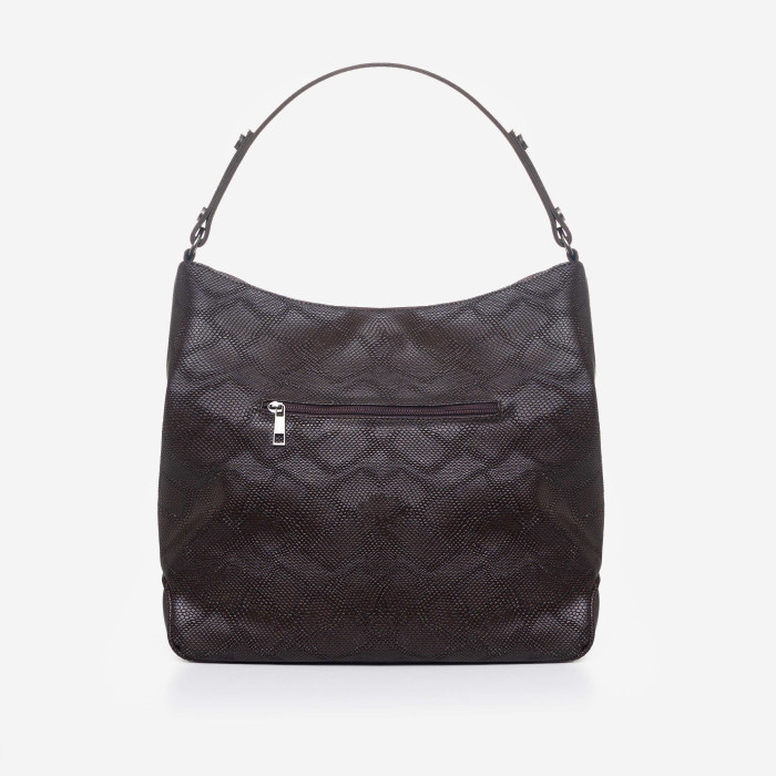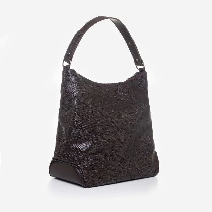 Сумка виготовляється з шкірзамінника високої хорошої якості та міцної підкладки. Одна тверда широка ручка середньої довжини дозволяє зручно носити сумку в руці, та на плечі. Дно оснащене металевими ніжками, які захищатимуть від ковзання та пошкоджень. Задня зовнішня панель вдало розміщує врізну кишеню на застібці. Передня стінка прикрашена функціональною кишенею з застібкою-китицею, яка виступають в ролі декору.