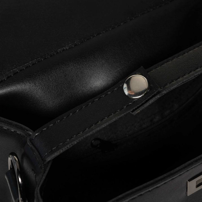Весь виріб зачиняється на блискавку, яка накривається клапаном. Сумочка має одну коротку ручку та знімний довгий ремінець, який можна відрегулювати під потрібний розмір, для легкого транспортування через плече.