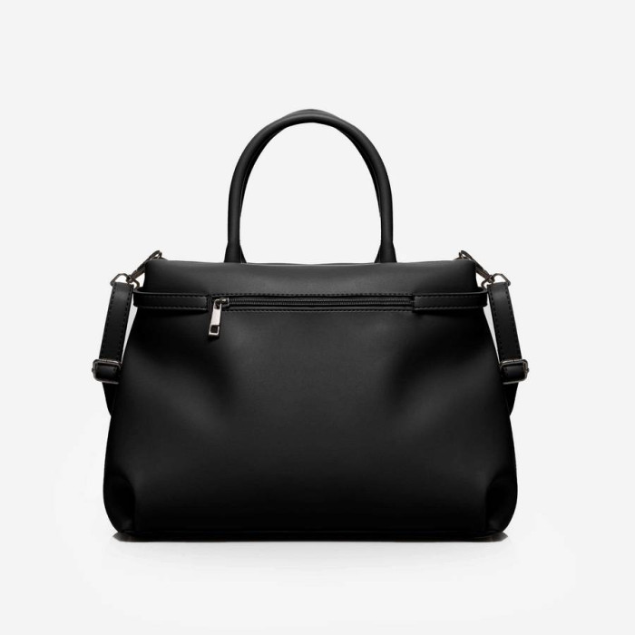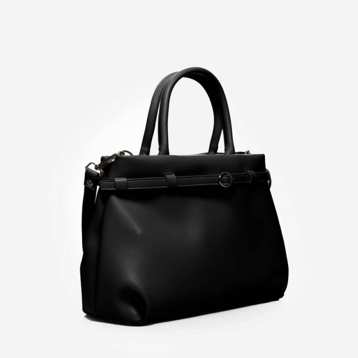 Сумку, з простим кроєм та мінімальним оздобленням, виконано з шкірозамінника високої якості, щоб її використання було максимально тривалим та приємним. Основна увага акцентується на гарній текстурі шкірзамінника ззовні, який з внутрішньої сторони має оригінальне покриття імітоване під велюр. Сумочка має дві короткі ручки, які розраховані на комфортне транспортування в руці. До комплекту входить довгий регульований ремінець. Задня стінка оснащена врізною кишенею на застібці. На дні встановлені металеві ніжки. Весь виріб зачиняється на блискавку.