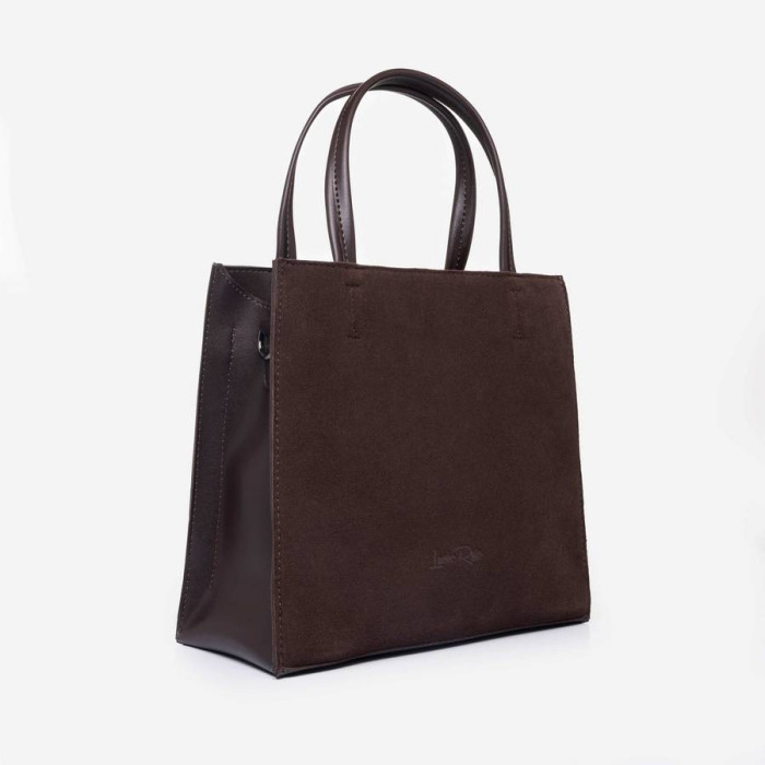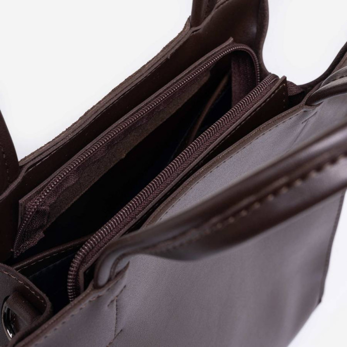 Сумку, з простим кроєм та мінімальним оздобленням, виконано з шкірозамінника високої якості, щоб її використання було максимально тривалим та приємним. Сумочка має дві короткі ручки, які розраховані на комфортне транспортування в руці. До комплекту входить довгий регульований ремінець.