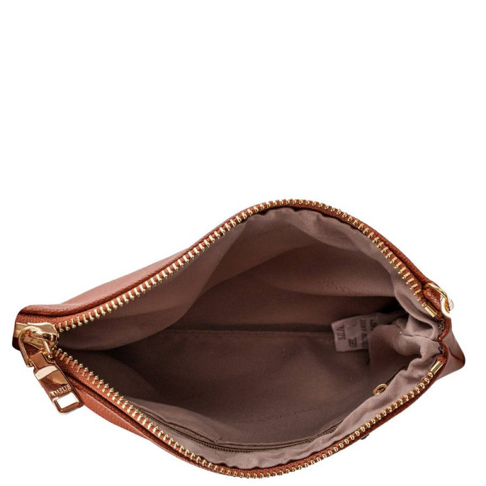 Кількість основних відділень: 1. Усередині є вшитий кишеня для мобільного телефону або різних дрібниць, який закривається на блискавку. Виріб має знімний плечовий ремінь. Довжина ременя не регулюється і дорівнює 123 см. Аксесуар придатний для носіння в руці, на плечі, через плече. Матеріал підкладки: щільна тканина. Матеріал виробу: шкірзамінник. Колір: коричневий. Колір фурнітури: золото. Розміри (X*Y*Z): 21*16*1 см. Сумка закривається за допомогою блискавки. Документи формату А4 не поміщаються у аксесуар. Виріб упаковано в поліетиленовий пакет. Країна походження ТМ Amelie Galanti, а також країна-виробник - Китай. Гарантія: 1 місяць.