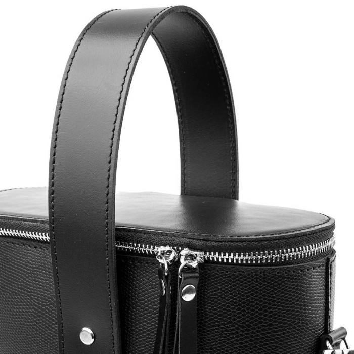 Кількість основних відділень: 1. Всередині є прорізна кишеня на блискавці й два накладних. Модель має незнімну ручку для перенесення в руці. Її довжина не регулюється і становить 46 см. В комплект входить знімний плечовий ремінь регульованої довжини (155 см). Аксесуар придатний для носіння на плечі, через плече. Матеріал підкладки: тканина. Матеріал виробу: шкіра. Колір: чорний. Колір фурнітури: срібло. Розмір: 21,5 (замір по дну)*25*10,5 см. Сумка закривається за допомогою блискавки. Документи формату А4 не поміщаються у виробі. Виріб упаковано в поліетиленовий пакет. Країна походження ТМ Eterno, а також країна-виробник - Україна. Гарантія: 3 місяці.