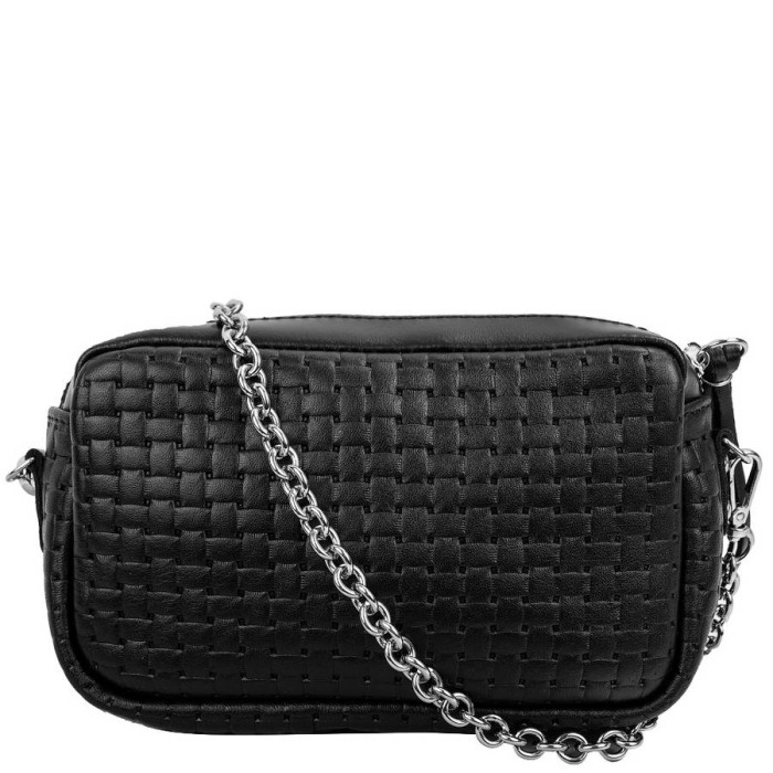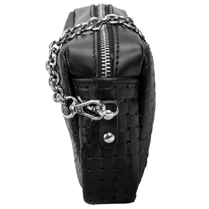 Розміри (X*Y*Z): 21*12*5 см. Ширина дна може змінюватися по мірі заповнення аксесуара. Кількість основних відділень: 1. В комплект до виробу додається знімний плечовий ремінь-ланцюжок. Його довжина не регулюється і становить 129 см. Аксесуар придатний для носіння в руці, на плечі, через плече. Матеріал підкладки: тканина. Матеріал виробу: шкіра. Колір: чорний. Колір фурнітури: срібло. Клатч закривається за допомогою блискавки. Документи формату А4 не поміщаються у виробі. Виріб упаковано в поліетиленовий пакет. Країна походження ТМ Eterno, а також країна-виробник - Україна. Гарантія: 3 місяці.